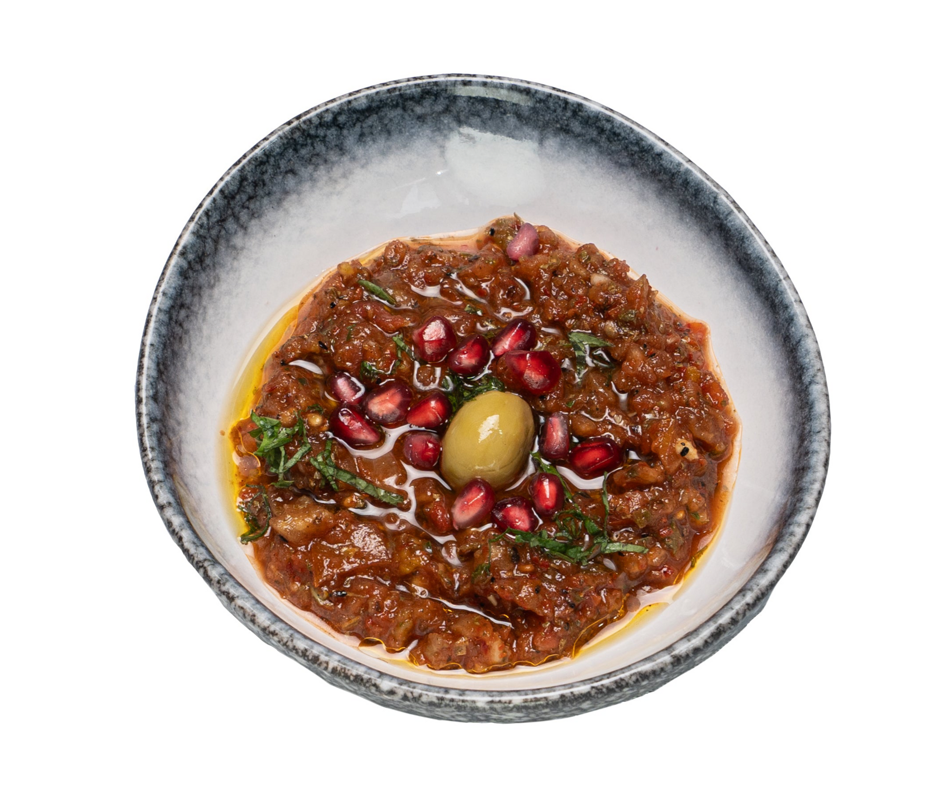 Discover the bold and fiery flavors of our Ezme, a traditional Turkish spicy salad that's a must-try in Turkish cuisine. This tangy dish is expertly prepared with fresh tomatoes, rich red pepper paste, and sweet pomegranate molasses, then spiced up with chili peppers and a fragrant spice blend. Renowned for its robust and spicy taste, Ezme adds a kick to any dish. Typically served alongside juicy kebabs or as a flavorful appetizer, it's perfect for spice aficionados and those who enjoy intricate flavors.