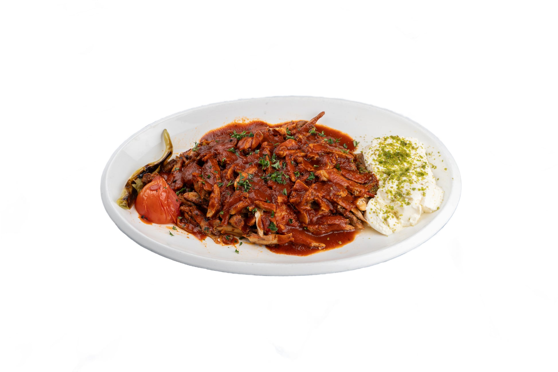 Experience the delicious flavors of Turkey with our Iskender Chicken Kebab. This dish features juicy chicken kebabs, expertly grilled, and served on a bed of soft pita bread. A tasty tomato sauce and creamy yogurt topping create a perfect blend of tastes and textures.
