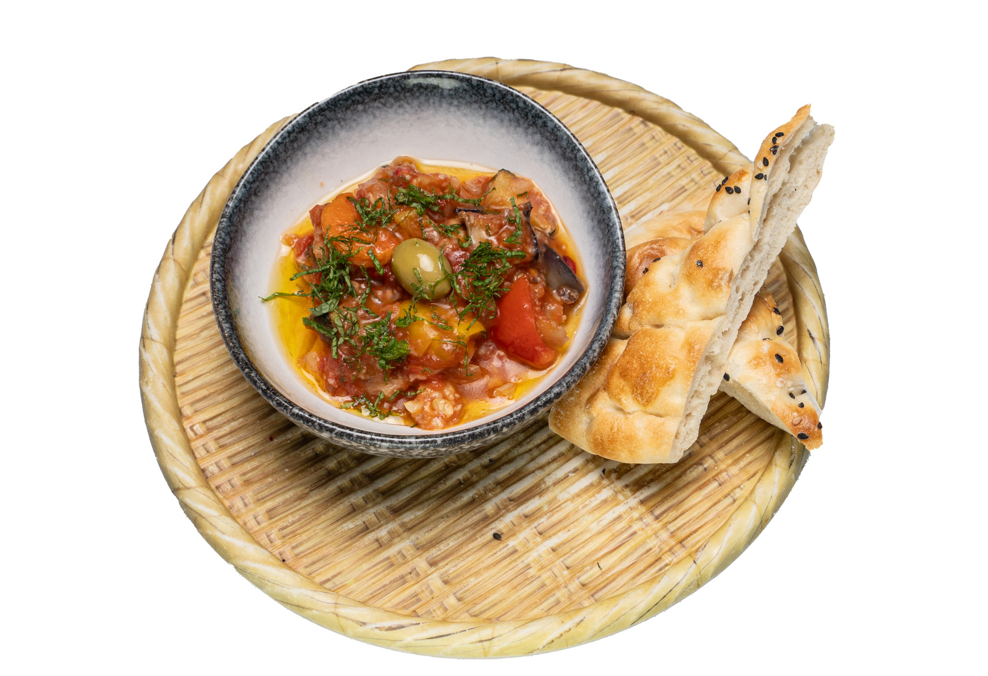 Indulge in Saksuka, a classic Turkish delicacy known for its diverse blend of flavors. This dish comprises soft sautéed eggplant, crunchy green peppers, and ripe tomatoes, enhanced with aromatic garlic, top-quality olive oil, and various Mediterranean herbs and spices. Saksuka promises a fulfilling and tasty vegetable dish, ideal as a side or starter for any Turkish meal.