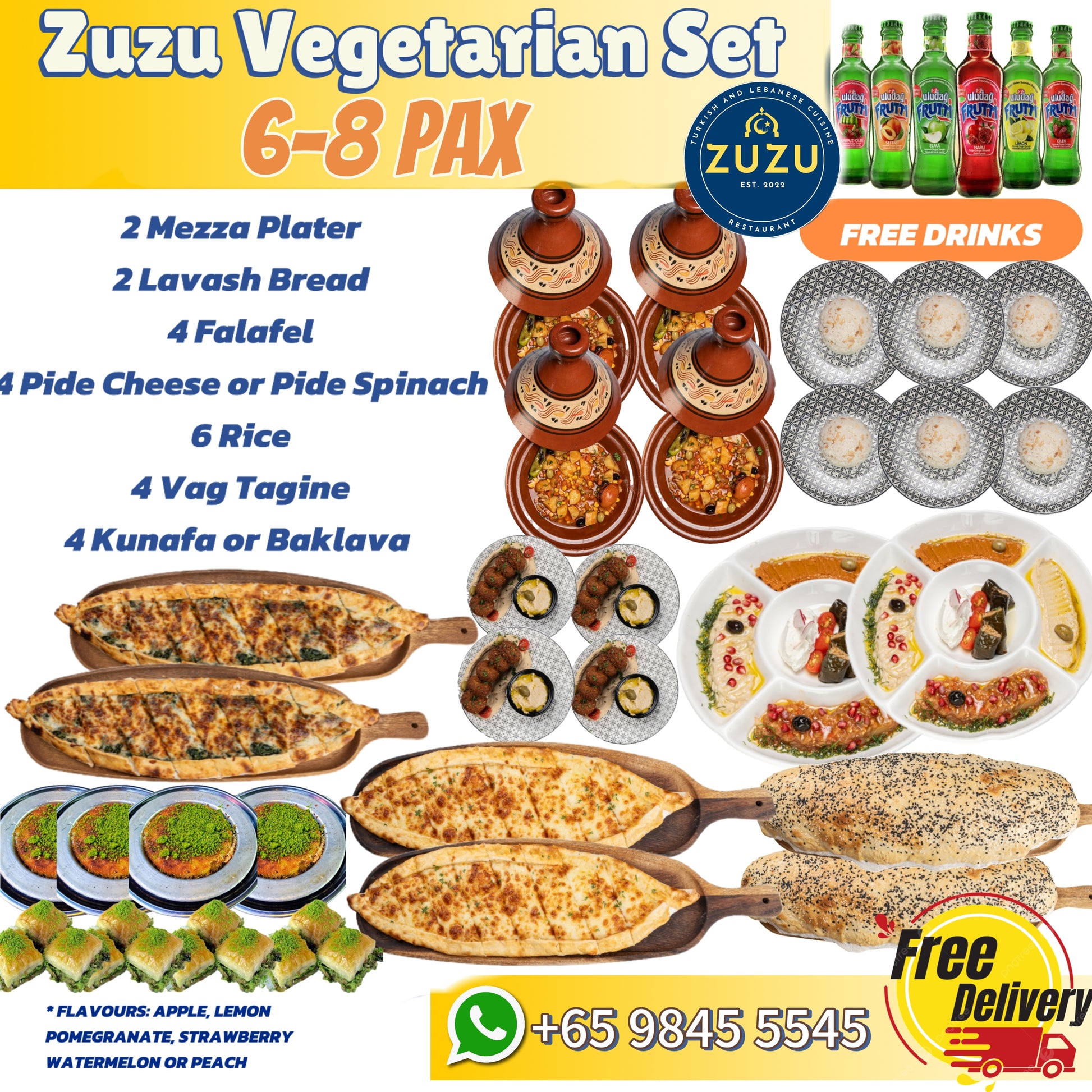 Feeding a crowd? The Zuzu Vegetarian Set for 6–8 Pax is a generous, plant-based feast designed for large families, group gatherings, or celebrations. Bursting with color, texture, and authentic Mediterranean-Turkish flavor, this halal-certified set is hearty, wholesome, and sure to please every guest — meat-free, but full of soul!